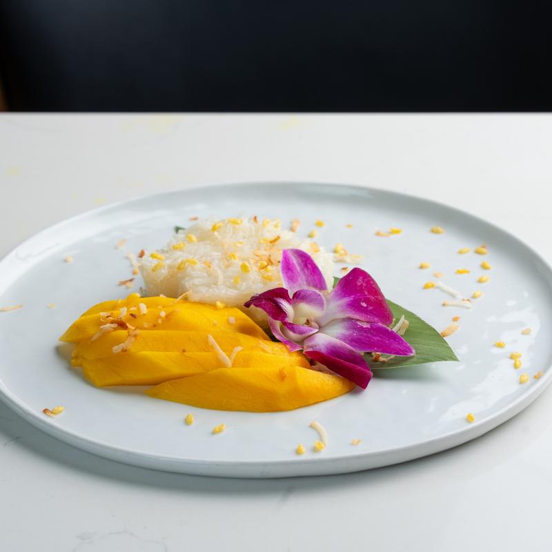 Cherry duck, onions, Thai herbs, Thai chilis, lime dressing, rice powder, and black sticky rice.
