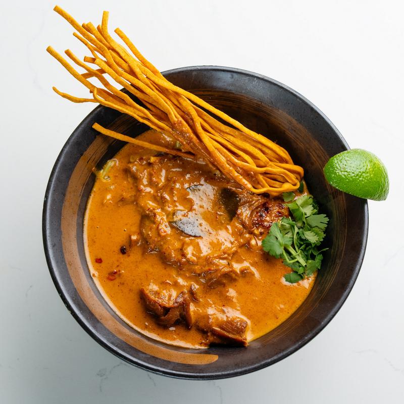 Our famous Thai northern-style egg noodle in “khao-soi” curry, pickled cabbage, red onions scallions, roasted chilies, and crispy egg noodle with your choice of Tofu or Chicken.